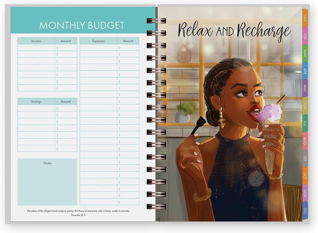 Vibrant Visuals: Each planner features artwork and photography by talented Black artists, offering an inspiring look at culture, heritage, and everyday beauty. Every design is rooted in the richness of the Black experience.
