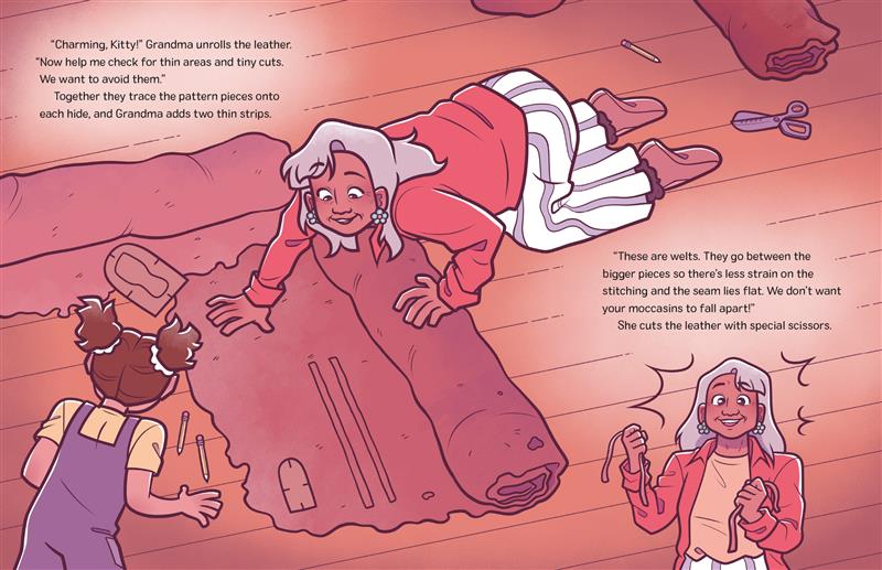 Charlotte has outgrown her moccasins, so she and her Mom head to Grandma's for new ones. Grandma teaches Charlotte how to make her new mocs step-by-step, and she learns a valuable skill from her beloved elder in this heartwarming multigenerational story.