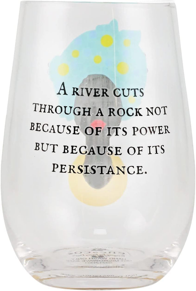 Centered in culture, this colorful Our Name is Mud glass inspires with a thought-provoking quote and bedazzled silhouette. Saluting the women that never quit, this goblet is patterned with strength. Be like the river and persevere through it all.