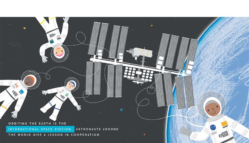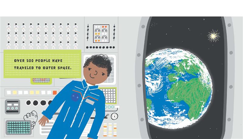 In this oversized illustrated lift-the-flap board book, toddlers embark on a journey through space. They’ll visit the moon, the International Space Station, and Earth’s neighbors in the solar system, seeing the Mars Rover, Jupiter’s Red Spot, Saturn’s rings, and more before coming safely back to their own beds in 3-2-1 Blast Off! A Journey to Our Solar System.