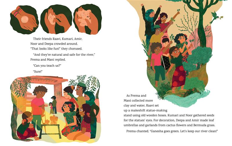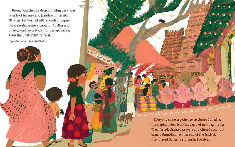 ★ “With youthful optimism and a can-do spirit, Prema creates an eco-friendly Ganesha statue, and other young people join her in reimagining how the holiday can be celebrated in a way that protects the river . . . A must-have for holiday collections” – School Library Journal, starred review